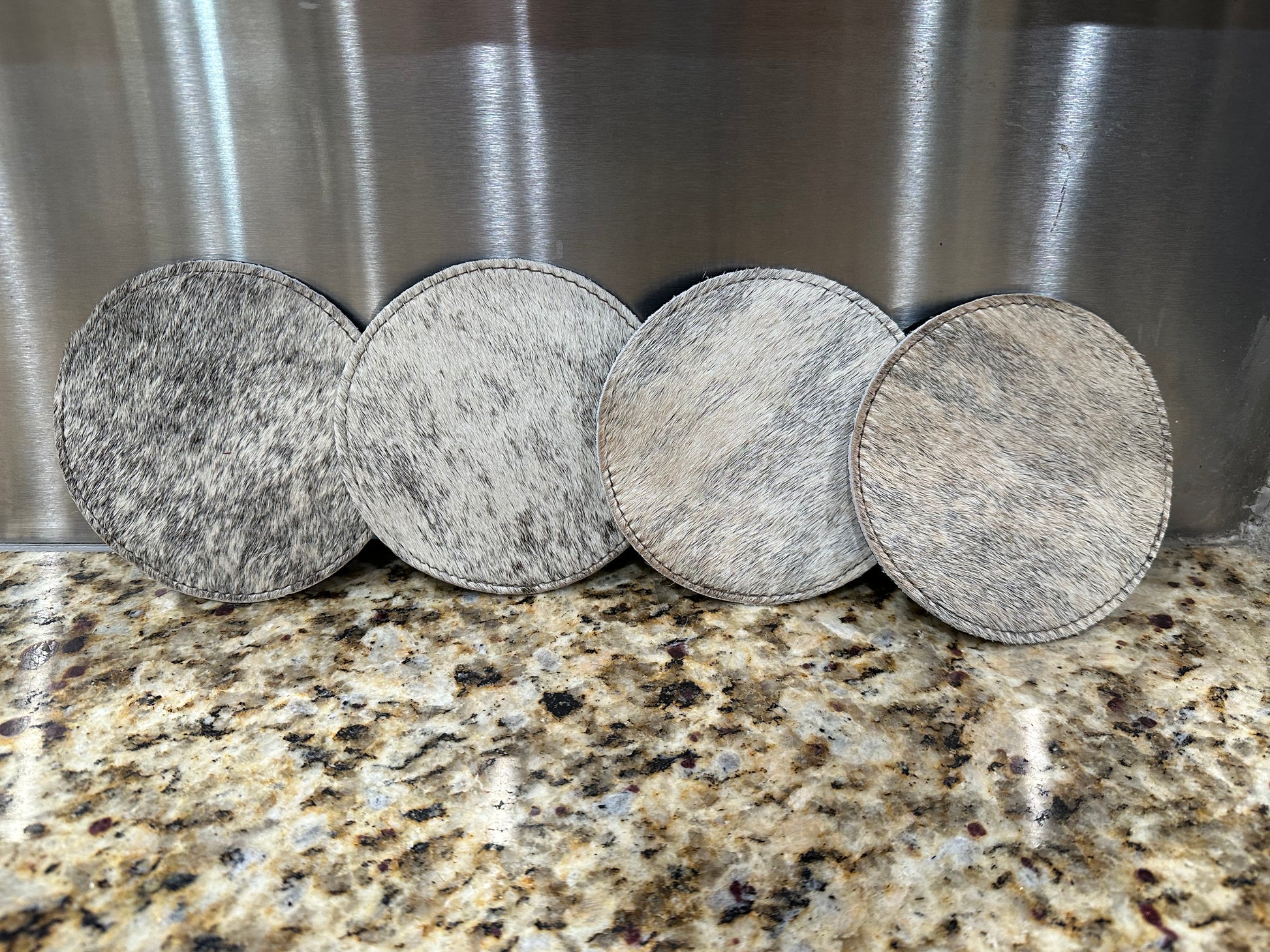 GREY COWHIDE COASTERS
