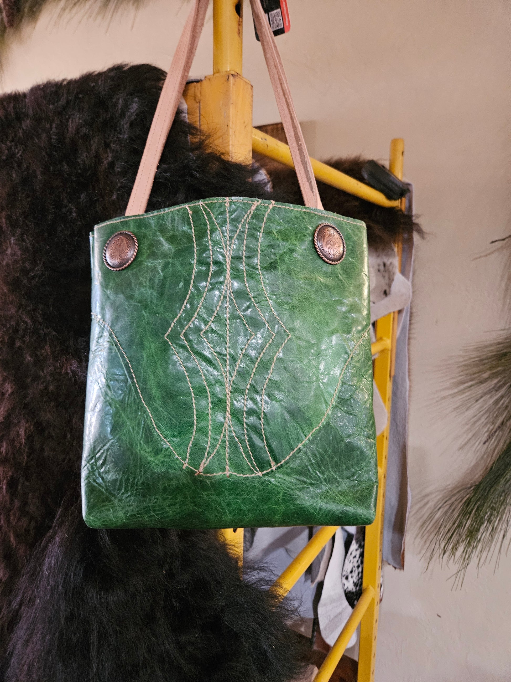 12 WIDE, 11 TALL, 3 INCH BOTTOM - GREEN GOAT SKIN