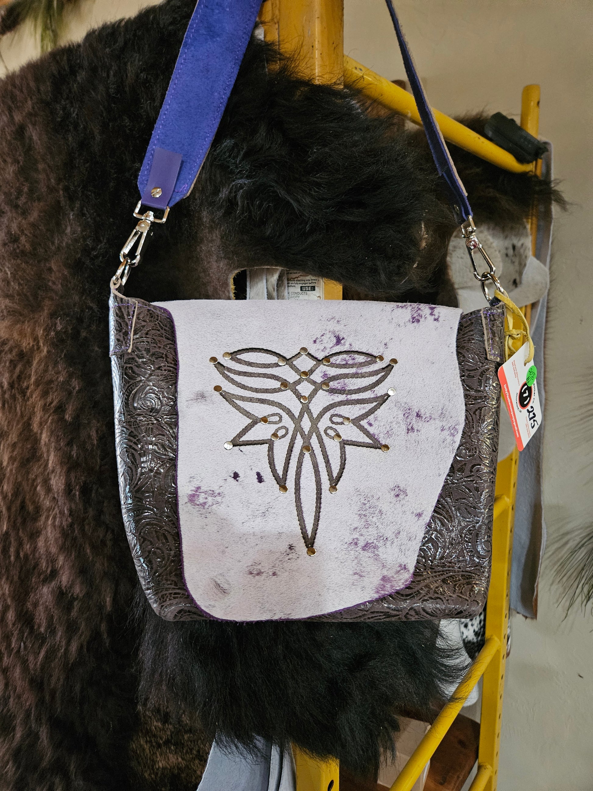 13 WIDE, 10 TALL, 6 INCH BOTTOM - COWHIDE LASERED/STUD FLAP